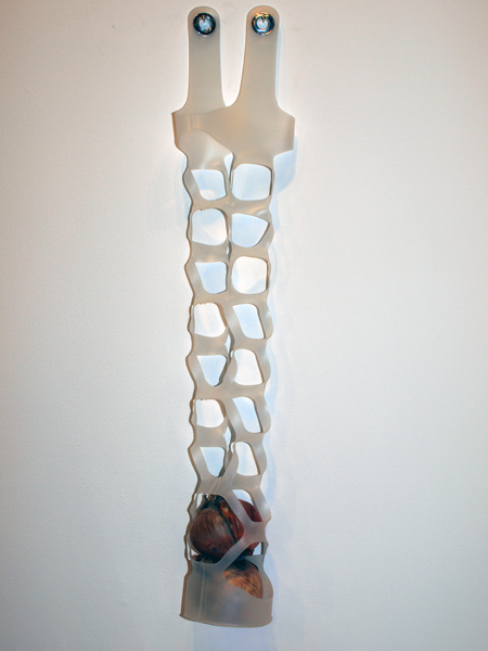 まずこの作品依頼を受けた際に問題になったのが、審査員コメントでも指摘があった軟質塩ビの伸縮性についてでした。どうしてもコンテスト用試作だと既製品生地しか使用できないので、審査員の指摘はある意味、想定内の意見でしたのでこれは仕方の無いことでしょう。